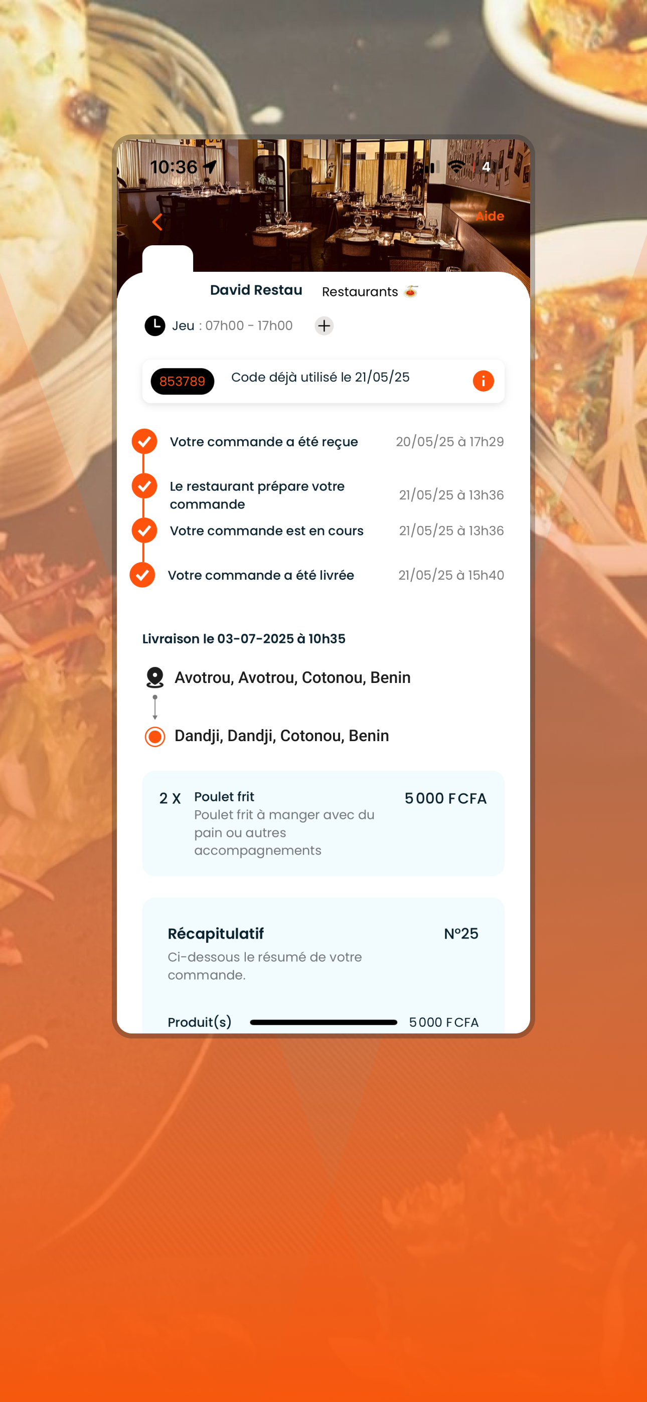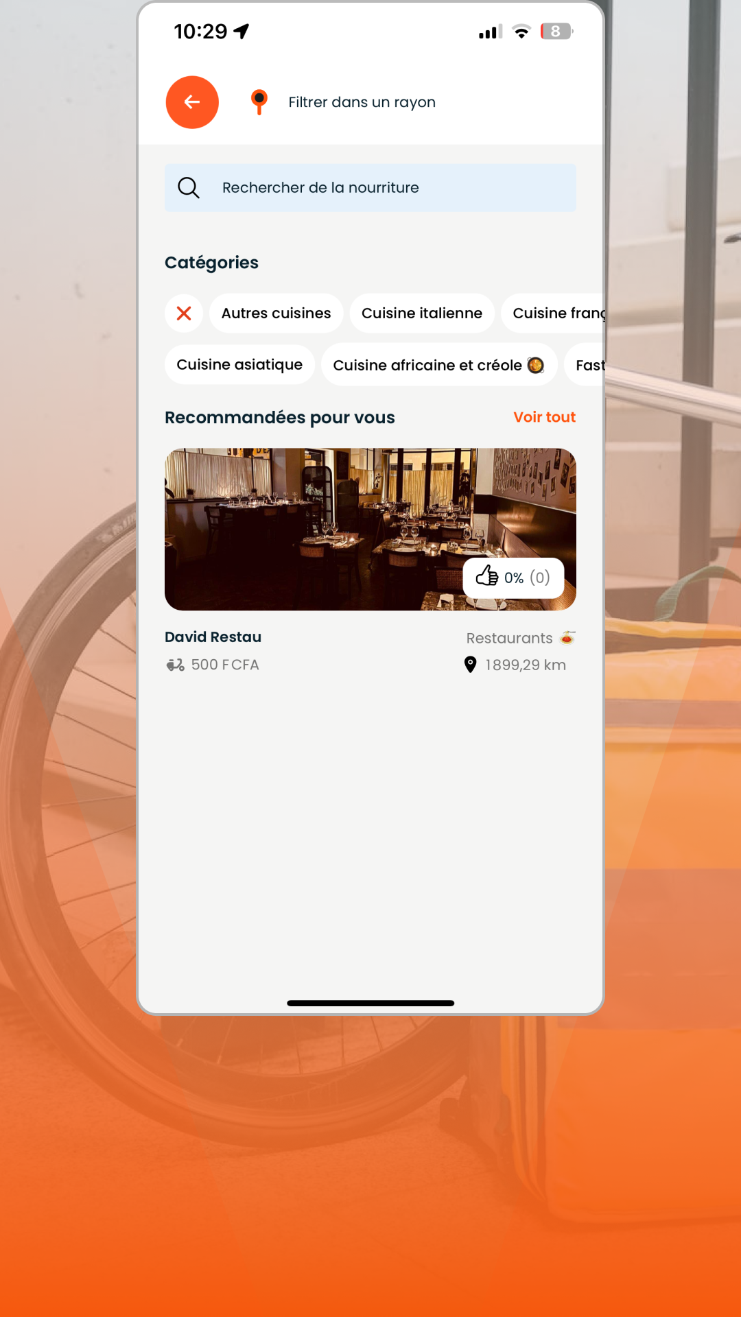 Choisissez un trajet, un restaurant ou un supermarché, confirmez, et suivez l'arrivée en temps réel.