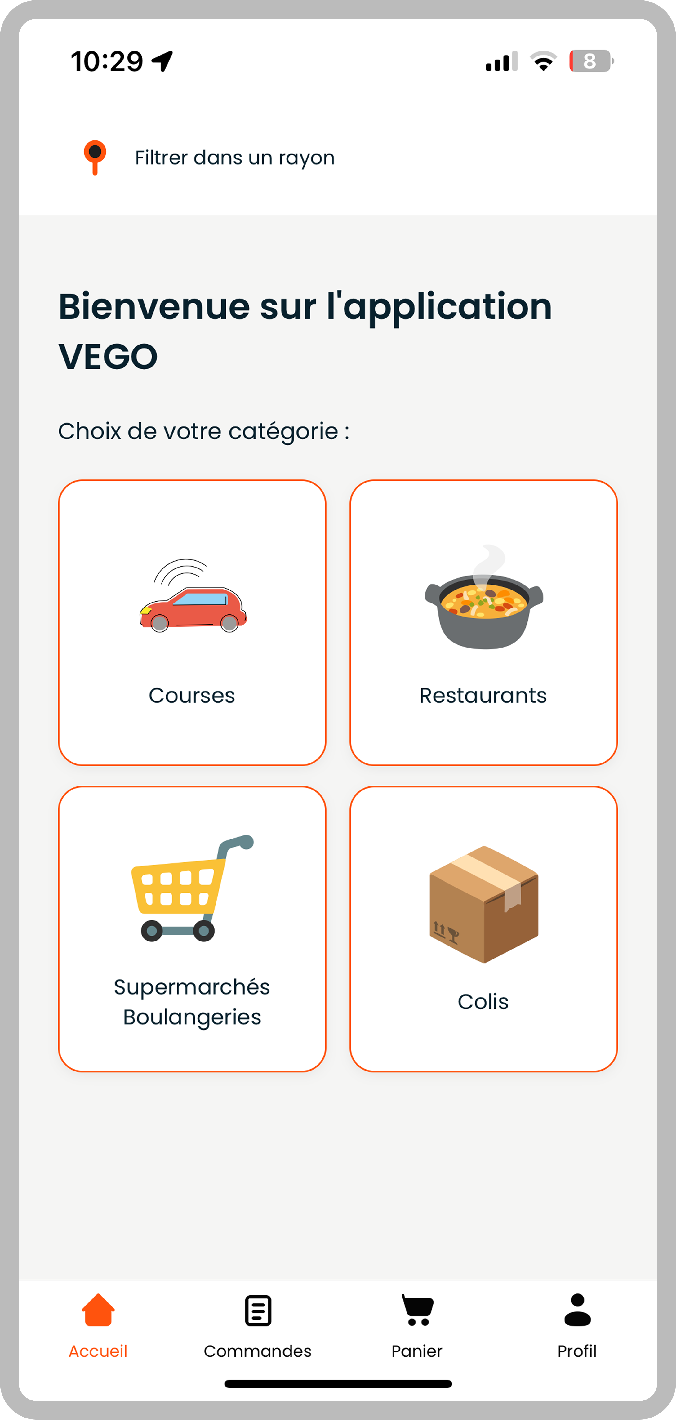 Une interface simple et élégante avec l'application VEGO, qui allie modernité et esthétique, pour une expérience utilisateur fluide et agréable.